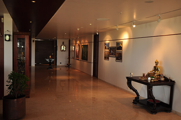 The client's aspiration was to create a “memory of place” when they move into their new apartment. So new furniture pieces were selectively designed to blend with their existing pieces and art works. An exhibit wall was designed with special lighting to celebrate these artworks. The new furniture pieces and wall treatment were crafted in wood to blend with the ambience. The colour palette is subdued for the apartment to augment the colours of the display painting.